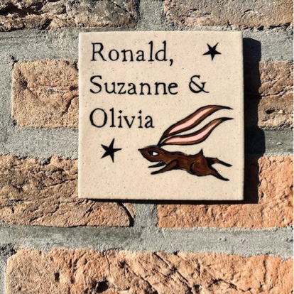 - tegeltje met namen en huisnummer circa 13 x 13 cm